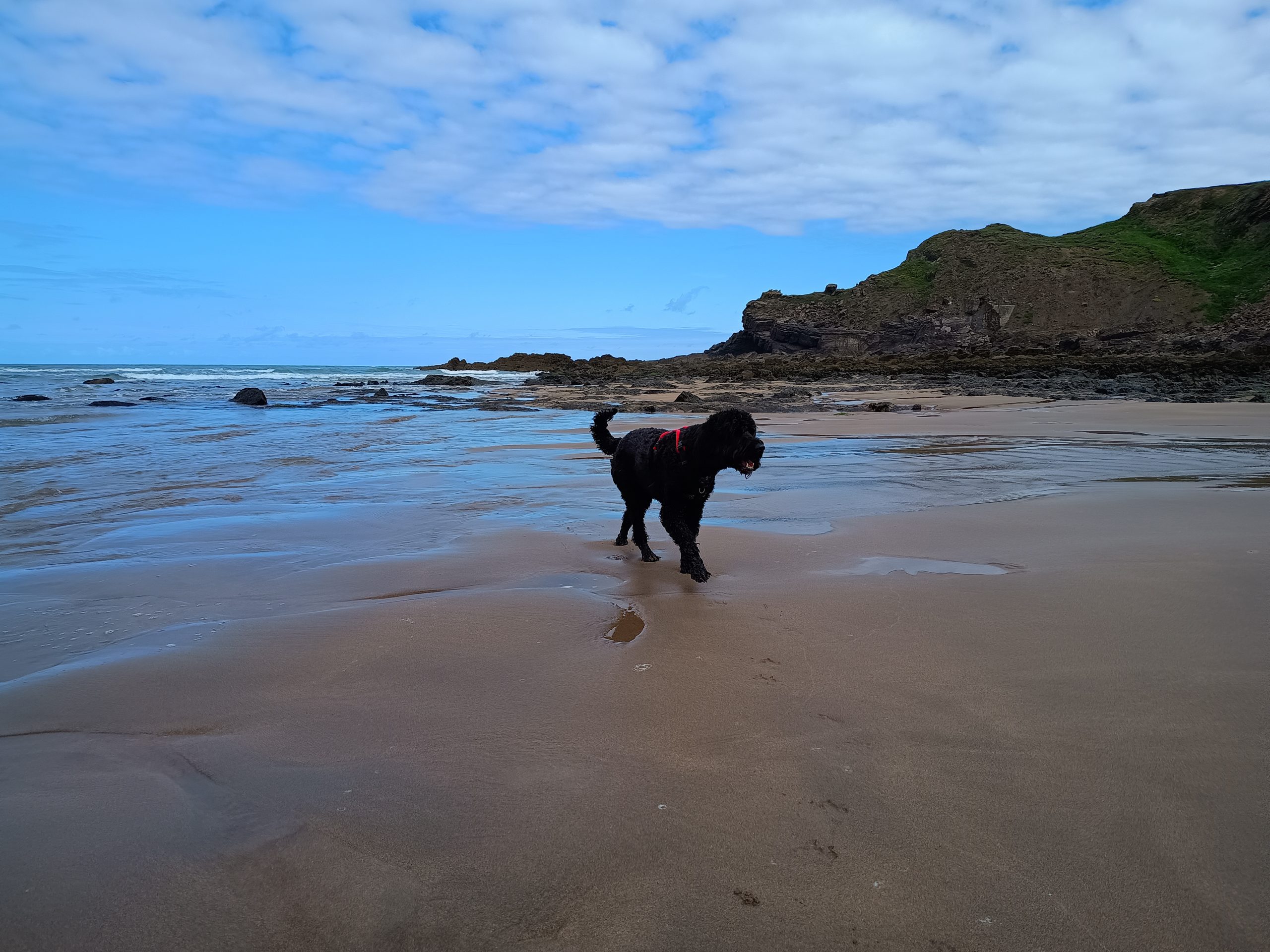 Our second day sees us at the picturesque fishing port of Boscastle. Situated between Tintagel and Bude, this delightful natural harbour retains much of its original charm. With its brightly daubed fishing boats and piles of well-used lobster pots you would be forgiven for thinking you had stepped back in time. There are some dramatic costal paths to explore but we opt to soak up the atmosphere before heading to nearby St Nectars Glen, home to a magnificent 60ft waterfall. This place of pilgrimage is named after the 6th century Saint Nectan, who according to legend resided in a hermitage above the waterfall and would ring a bell in stormy weather as a warning to ships. It’s not surprising that this place of outstanding beauty has been given special status by many and you will see hundreds of coins pressed into felled logs (wishing trees). The nearest car park is on the main road in Trethevy. From here you cross the road and follow the signs down a quiet country lane until you reach the shady woodland path that winds along the banks of the river Trevillet. The walk involves negotiating uneven paths and steps so may not be suitable for everyone. We head back to base and have a well-earned late lunch. The award-winning Rectory Farm Tea Rooms make up the other half of the building housing our accommodation. Dogs are welcome in the seating area in the pretty cottage garden. And we enjoy a hearty ploughman’s lunch and freshly baked quiche. The tea room opens daily in season from11am to 4pm. As such visitors to the tea room can be heard in the hallway area of the property during opening times. It wasn’t a problem for us but you may want to take it into consideration if you have a noise sensitive dog. The owners also have three of their own friendly dogs, so again the West Wing may not be suitable for you if you have a dog that worries about other dogs. On day three we opted for a day at the beach at nearby Sandymouth Bay which is dog friendly year round. As its low tide we are able to spend several hours on the sandy beach exploring the many rock pools before enjoying a latte at the Sandymouth Beach Cafe where dogs are welcomed in the outdoor seating area. From here we head to Bude and take a walk along the remarkable Bude canal that ends at the harbour. Some parts of the beach are off limits to dogs so be sure to check first.